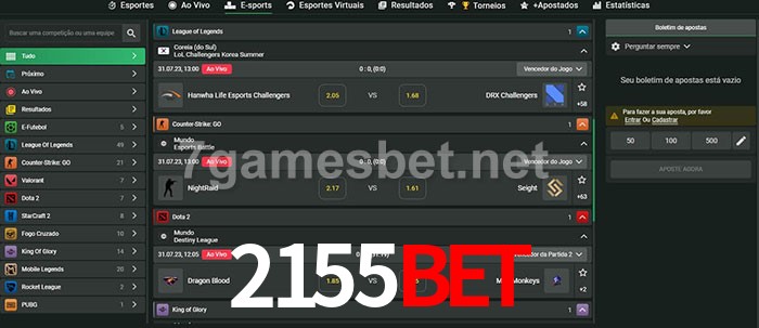 O 2155Bet oferece uma grande seleção de opções de apostas em e-sports com probabilidades competitivas